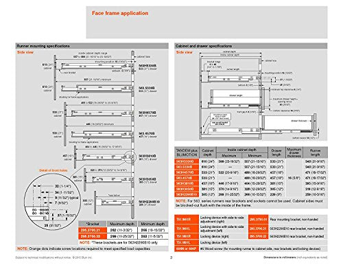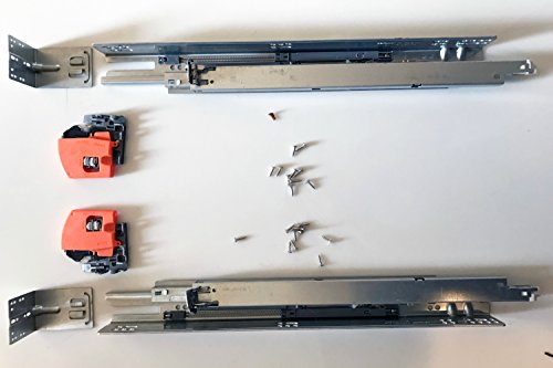Details: Discover BLUM's exceptional quality drawer slides Blum Tandem plus Blumotion Complete Kit offered by Luxotech. With100 lbs static load-bearing capacity, full extension and soft closing. The drawer slides can be four-dimensional adjusted and have elongated holes for depth adjustment & bottom mount holes that allow you to mount the slide to a shelf or the bottom of the cabinet. Blum Tandem fits 1/2" - 5/8" drawer side thickness. The Complete Kit is supplied with 12 runners, 12 locking devices, 12 rear brackets (needed for face frame only application) and screws.