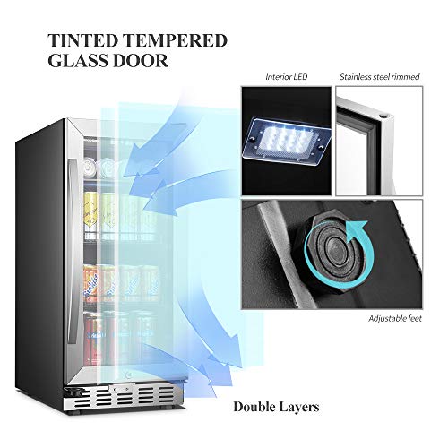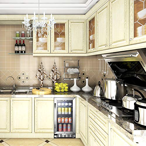 Details: Tamaño: 70 latas | Color: acero inoxidable y negro. Este refrigerador de bebidas de Sinoartizan, se puede instalar de forma integrada o independiente, ofrece una gran variedad de funciones a lo largo de su tamaño compacto. Patas ajustables: nuestro refrigerador de bebidas compacto, flexible en altura cuando se instala bajo encimera o independiente, y proporciona la ventilación frontal con un mejor ambiente de ventilación mientras tanto. Puerta de cristal templado de doble capa tintada: la puerta está hecha de vidrio de alta rigidez con borde de acero inoxidable, capa exterior tintada, buena resistencia a la presión, bloquea los rayos UV y el fuerte brillo. Control táctil del panel: diseño sin botones para un fácil funcionamiento, una amplia gama de 37-64 grados Fahrenheit para que elijas y almacenes tus colecciones de bebidas favoritas. Almacenamiento de temperatura constante: una amplia gama de temperatura de 37-64 grados Fahrenheit control, con el mini ventilador eléctrico integrado, refrigeración estable y sin vibración, transmitiendo aire frío a cada esquina, haciendo que cada lata o botella de bebidas como refresco o cerveza a una temperatura adecuada. La iluminación suave hace que sea un escaparate privado para ti: luz LED blanca, iluminación interior suave, hace que tu colección sea más atractiva. Una elección perfecta para un amante de las bebidas. Bonito cuerpo negro con ventilación frontal de acero inoxidable, diseño extremadamente simple, te trae una sensación de poco elegancia, un lujo práctico, este enfriador compacto de bebidas será un ayudante "genial" para tu hogar. Nota: la capacidad solo se logra si todas las latas almacenadas son de tamaño estándar de 11.2 fl oz. Para acomodar latas o botellas más grandes, la capacidad disminuirá relativamente.