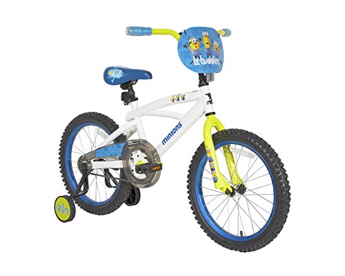Details: Little Minions fans can now ride with their Minions friends on this 18 inch kids bicycle. Featuring graphics of their favorite characters, bob, Kevin and Stuart, the colorful bike on a curved frame. With adjustable training wheels, seat and coaster brake, the bike is the perfect choice for a beginner rider. Kids will have despicable fun for hours.