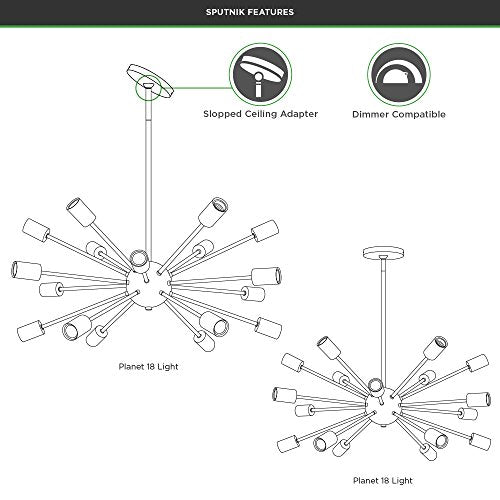 - SATISFACTION GUARANTEED - Our US-based support team is available through phone or seller messages. The 18-socket atomic starburst chandelier includes a 1 year warranty.