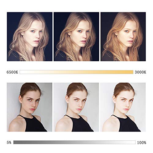 - 【Various Setting】Multiple color changing warm 3000K to cold 6500K and brightness from 5%-100% by Knobs.180° folding angle for light, 360° Rotation Angle for light/phone holder.
