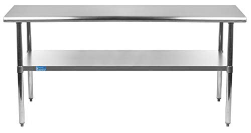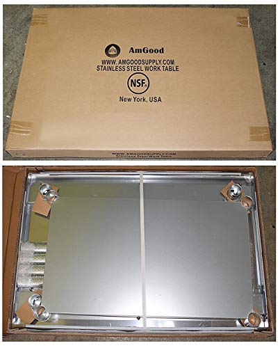Details: Stainless Steel Work Table With Galvanized Under Shelf Common Applications: Food Prep Table For Commercial Kitchen Kitchen Island Counter Extension Utility Bench for Shop Professional Work Station Garage Work Bench Laundry Clothes Folding Table Brewing Setup Exam Table For Veterinarians Butcher Shop Product Specifications Stainless steel worktable surface has curved edges for safety and comfort. It incorporates a heavy duty adjustable galvanized under shelf and leveling feet. 18 Gauge 430 Stainless Steel Top Galvanized Adjustable Under Shelf Adjustable feet to compensate for uneven floor Adjustable under shelf - great for storage Height: 35" NSF Certified Sturdy & easy to setup Heavy Duty AmGood Supply prides itself of being a one stop shop for all of your restaurant supply needs. AmGood Supply offers a wide selection of stainless steel work tables with galvanized legs and undershelf. All work tables are made with T-430 18 gauge stainless steel, designed to be easily assembled, and are NSF certified. Stainless steel work tables are commonly used for food prep in a commercial kitchen, as a work desk, assembly line table, work bench, and in many other residential, commercial and industrial applications. AmGood Supply work tables are known for their premium quality and economy prices. Frequently Asked Questions What is the height of the table? The height is 35" Is it hard to assemble? The work table is designed to be assembled by one person. Assembly should take 10-15 min. Is hardware included? Yes, a set of screws and an Allen wrench are included in the order.