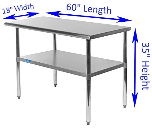18" X 60" Stainless Steel Work Table with Undershelf | NSF Certified | Laundry Garage Utility Bench | Kitchen Island Food Prep