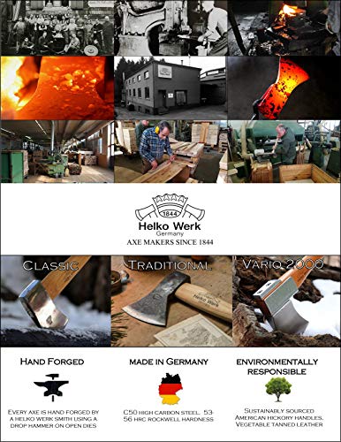 - HANDMADE IN GERMANY The Vario 2000 Universal Hatchet is a durable and reliable outdoorsman's tool. With an 18 inch axe handle, this hatchet can be easily strapped to your pack for any wilderness excursion. The wedge incline in the blade allows the hatchet to be used comfortably for both splitting and cutting work, whereas most camping hatchets feature a slim profile designed for cutting only. This unique head shape makes the Vario 2000 hatchet a great go-between tool for all kinds of work.