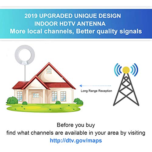 1byone HDTV Antenna [2019 Upgraded Version] Digital Amplified Indoor TV Antenna, Amplifier Signal Booster Support 4K 1080P UHF VHF Freeview Life Local Channels All Type Television (Renewed)