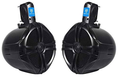 - Rockville RWB80B Pair of 8" Black WakeBoard Tower Speakers Totaling 600 Watts (300 Watts per speaker). 8" Two-Way High Fidelity Speaker System. Adjustable Nylon Mounting Bracket Reinforced With Embedded Steel. Includes Stainless Steel Mounting Hardware. 1" Polymide Dome Neodymium Midrange Tweeter. Built-In Two-Way Crossover Network. Fully Marinized Against Salt & Fresh Water Conditions. Completely Water / Rust Resistant.Includes long screws that accommodate Jeep Wrangler and any roll bar.