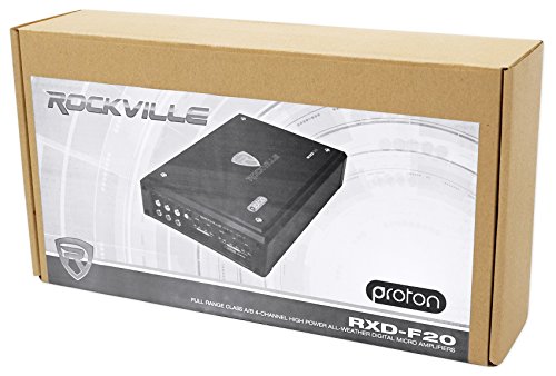 Rockville RXD-F20 1600 Watt Peak / 800w RMS 4 Channel Car Stereo Amplifier . Peak Power: . .....1600 Watts (2 x 800 @ 2 Ohms or 1 x 1600 @ 4 Ohms). High-Speed MOSFET Power Supply. Studio-Grade Bipolar Output Stage Transistors. Fully Adjustable 12dB / Octave Crossover with Differential Circuitry. Fully Adjustable High Pass Crossover: 50Hz - 250Hz. CH1 & CH2 High Pass 50Hz - 250Hz. CH3 & CH4 Low Pass 50Hz - 250Hz. CH3 & CH4 High Pass 50Hz - 250Hz. Selectable +6dB/+12dB Bass Equalizer . Mute and Delay Soft Start System. High Level Input with Smart Auto Turn-On. Double Sided Surface Mount (SMD) PCB Design .