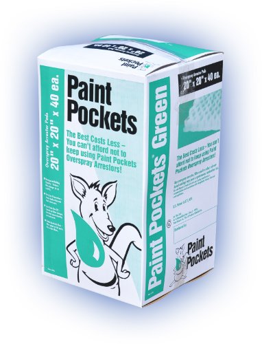 Details: Paint Pockets Green is your best value for production spray booths. Paint Pockets Green is specially engineered to filter both liquid and powder coating overspray generated in industrial and automotive applications. This filter is specifically designed and priced to replace expanded paper, fiberglass and other lower efficient lower cost filters. By switching your filtration media to Paint Pockets Green you reap the rewards of the Paint Pockets Green triple bonus. Paint Pockets Green's 99.43% arrestance efficiency means it knocks down and retains more overspray than other filters. It keeps overspray out of your exhaust stack and off the booth floor. The Paint Pockets Green filter has a holding capacity of up to 6 pounds of overspray per square foot. Filters loaded with overspray do get heavy, but won't tear or sag due to the special design of the filter. Its unique design holds up to five times more overspray than other filters, enabling you to cut your filter changes by up to 80%. The three-dimensional diamond pocket embedded in the front face of Paint Pockets Green more than double its surface area allowing the filter to remain in the booth longer to capture and hold large quantities of overspray. As the filter loads with overspray they start to resemble your current filter but do not need to be changed until the sides of the pocket fill with overspray. Using Paint Pockets Green filters will save you money. You can slash disposal costs due to the extended life of the filter. Fewer filter changes means less waste. Your savings are significant, particularly if you use hazardous waste processors. Paint Pockets Green filters help you to lower the total costs associated in operating your spray booth. When you change filters less frequently you lower the labor and overhead costs associated in running your booth. Package Quantity: 40-Pack
