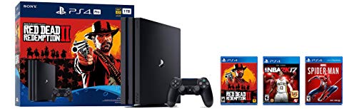 Details: Red Dead Redemption 2 PS4 Pro Bundle Experience Red Dead Redemption 2 on the PS4 Pro for enhanced 4K HDR graphics and optimized performance for your 4K HDR TV (when compared to a PS4 system). HD TV players will benefit from increased image clarity through supersampling (turn on Supersampling Mode in your PS4 Pro system settings to access this feature) when playing on PS4 Pro. Marvel's Spider-Man Marvel’s Spider-Man features your favorite web-slinger in a story unlike any before it. Now a seasoned Super Hero, Peter Parker has been busy keeping crime off the streets as Spider-Man. Just as he’s ready to focus on life as Peter, a new villain threatens New York City. Faced with overwhelming odds and higher stakes, Spider-Man must rise up and be greater. NBA 2K17 Following the record-breaking launch of NBA 2K16, the NBA 2K franchise continues to stake its claim as the most authentic sports video game with NBA 2K17. As the franchise that “all sports video games should aspire to be” (GamesRadar), NBA 2K17 will take the game to new heights and continue to blur the lines between video game and reality.