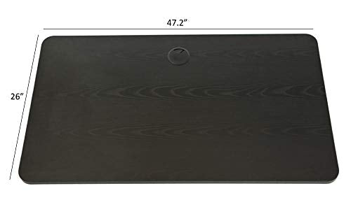 - COMPACT & ELEGANT WORK SURFACE – Smaller version of our popular 60” Vortex Series standing desk with enhanced stability. The top measures 47.2” x 26” x 1” and is made of MDF with scratch-resistant 3D laminate. The surface has a woodgrain finish, and one 80mm grommet. The black base has a matte finish. The color code is RAL 9005 (Jet Black).