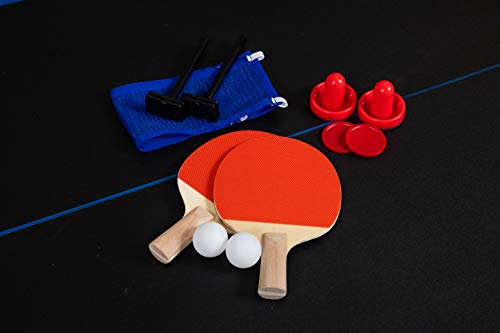 - EVERYTHING YOU NEED – This table comes with all necessary accessories, including (2) 3-in strikers and (2) 2.5-in pucks, (2) table tennis paddles, (2) balls and (1) net and post set.