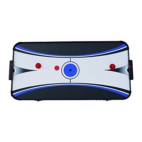 - HIGH OUTPUT BLOWER – This air hockey table’s powerful, 110V blower pushes steady current of air through thousands of holes, minimizing friction as your puck flies across the surface. The result is fast-placed, long-lasting play.