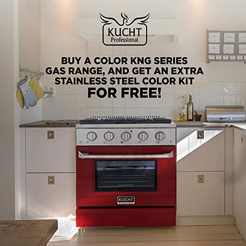 Details: Fitting into most standard kitchens, this impressive 30 in. range boasts a 22,000 BTU convection oven, with a 10,000 BTU tube burner broiler. Enjoy cooking with your new Pro-Style range features two 15,000 BTU and two 9,000 BTU burners. The main feature of this series is the abilty to the change the look of your kitchen in less than 2 minutes by changing the color of the oven door and the kickplate. You can get a new color set (oven door and kickplate) for a really low price and change it whenever you like. The currently available colors are: Red, Blue, White, Green, Black and Silver. Add a set of colors knobs, and get the most of it by mixing and matching. 4th of July? Christmas? Your kitchen decor will be ready in 2 minutes! You can get a new color set (oven door and kickplate) for a really low price and change it whenever you like. The currently available colors are: Red, Blue, White, Green, Black and Silver. Add a set of colors knobs, and get the most of it by mixing and matching. 4th of July? Christmas? Your kitchen decor will be ready in 2 minutes!