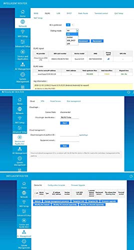- 1000mW high power, 4PCS external 5dBi antenna, longest WiFi coverage in the market. Support VPN and AC Management, Router information contains IMEI code