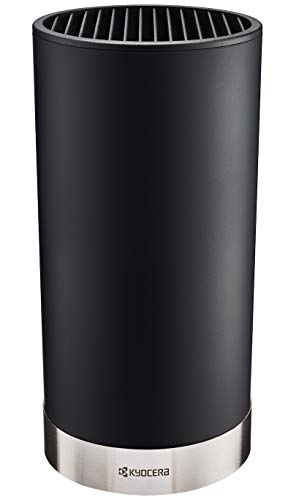 - The black soft touch round block safely stores 6-8 Kyocera Advanced Ceramic knives for quick and easy access