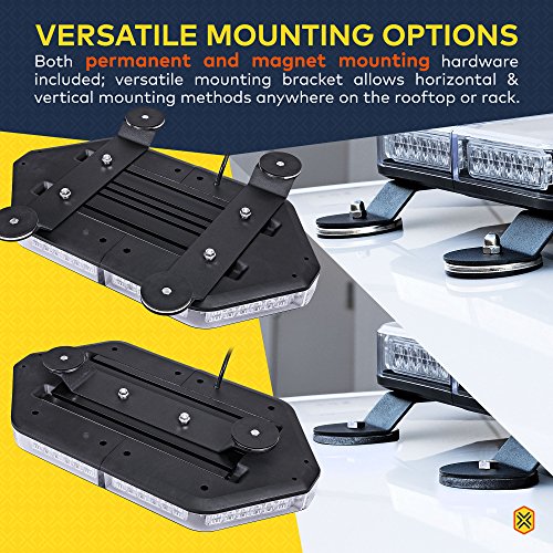 - VERSATILE MOUNTING OPTIONS - Both permanent and magnet mounting hardware included; versatile mounting bracket allows horizontal & vertical mounting methods anywhere on the rooftop or rack; perfect light bar for full-size sedans like Crown Victorias, Chargers, and more.