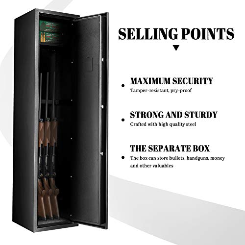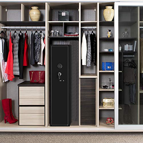 - 【MAXIMUM SECURITY】: Tamper-resistant, pry-proof, and crafted with steel, this rifle gun safe is in high strength and solid structure. A digital keypad lets you program this electronic gun locker with your own pass code, and the included keys allow for manual locking and unlocking, secures firearms away from kids, and deters theft.