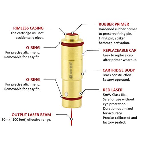 Details: WARNING FOR ANDROID USERS: MAKE SURE YOU PHONE SUPPORT HD CARTRIDGE BEFORE PURCHASE (Download LASERHIT app on Google Play to check compatibility) HOW IT WORKS Take aim at the LaserHIT paper target with your firearm loaded with the laser training cartridge and pull the trigger The cartridge will emit a short red laser light each time it's struck by the firing pin/striker LaserHIT mobile app running on your phone will track your shots on the target and display your hits in real-time with realistic sound effects You will see each of your shots on your phone and TV if connected LASER CARTRIDGE SPEC Product: Non-handheld laser Class: IIIa Output power: <5mW Wavelength: 635nm Color: red CARTRIDGE TYPES HD for precise hit registration GENERIC for work on trigger control CARTRIDGE FEATURES Drop-in-barrel design without any further modifications to your firearm Two o-rings keeps the cartridge in a place and maintain alignment during training Rimless design prevents the cartridge from being extracted during cycling Hardened rubber primer to protect your firing pin from wear (replaceable) LASERHIT PAPER TARGETS Specifically created to increase robustness to the light sensitivity Scaled for long distance practice within a small room Include reload mark for touch-less reload LASERHIT MOBILE APP FEATURES Available on iPhone (6 and up) and on Android (Lollipop 5.0 and up) Setup in minutes with on-screen instructions Unique touch-less reload feature: restart your Practice without leaving firing line Hit-counter to track the total number of hits HD TV ready: connect your phone to your TV to provide large and crystal clear content visible from your firing line in real time NOTES: SA firearms required to rack the slide before each shot Smartphone, and HDTV not included Cable or wireless adapter may not included in the selected kit.