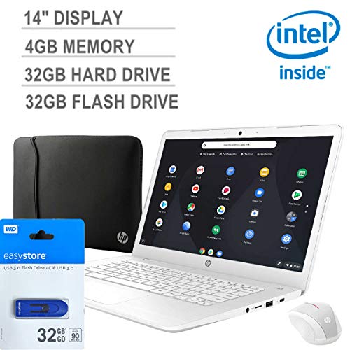 Details: ⭐️⭐⭐ HP 14" Chromebook FHD, Intel Celeron, 4GB RAM, 32GB Internal Storage, 2xUSB 3.1 Type-C, 2xUSB 3.1 Type-A, Chrome OS, White, Included Wireless Mouse & Reversible Sleeve ✅ Bonus Content HP Wireless Mouse X3000 (White), HP Reversible Neoprene Sleeve ✅ Bring visuals to life on your screen Intel Celeron N3350 Processor 1.1GHz, 4GB LPDDR4 Memory ✅ Ports & Slots 2x USB 3.1 Type-C, 2x USB 3.1 Type-A, 1x Combination Headphone/Speaker jack