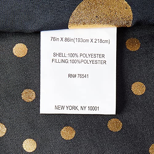 Details: Update your bedroom with this trendy Latitude Gold Glitter Bed in a Bag Bedding Set. The gold glitter pattern adds a modern look to any room. The Gold Glitter Set design is interpreted in a black and white stripe print with shiny gold glitter dots scattered all over the comforter. This machine-washable comforter set contains a comforter, flat sheet, fitted sheet, pillowcase(s), sham(s) and decorative pillow. The comforter and sham(s) feature a black solid background with a pattern of gold polka dots scattered on the reversible side.