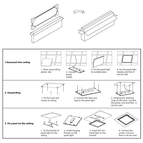 Details: LED FANTASY Led Panel Light is a real meaning of new style energy saving light product, its low profile with high quality light guide and clean look, they significantly reduce your energy bill, beauty your place, emit light to every corner. The upgrade wire connector smart design is one of the advantage you can not never find on other same kind of products(check our photo), buy it now and it belongs to you.Specifications * Light Source: LED * Input Voltage: AC 100-270V * Power: 40W *Color Temperature: Daylight 5000K * Light Output (lumen): 110 lumen/W * Beam Angle: 120 degree * CRI: 80+ * Dimmable: YES (Dimmer is not included) * IP Rating: IP40 * Operational Temperature Range: -10~45℃ * Installation Area: Indoor * Life Expectancy: 45,000 hours * Certification: DLC-Certificated, UL-Listed * Product Dimensions: 2’X2’X0.04’ Packing Content 2 X Led Panel Light
