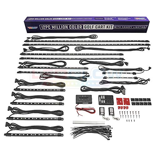 LEDGlow 12pc Million Color LED Golf Cart Underglow Accent Neon Lighting Kit w/ Canopy for EZGO Yamaha Club Car