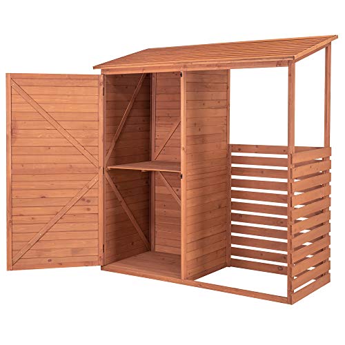 Leisure Season CFS7181 Combination Firewood and Storage Shed - Brown - Outdoor Garden Cedar Box with Shelves, Roof, Doors - Large Yard Lumber Lockers - Patio, Backyard, Deck, Organizer -Fast Assembly