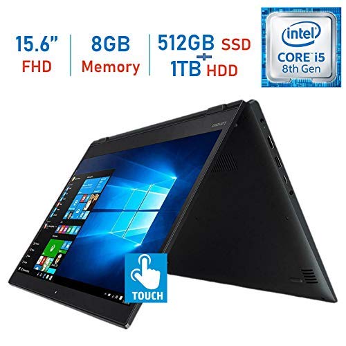 Lenovo Flex 5 15.6-inch 2-in-1 Touch FHD IPS (1920x1080) Laptop PC, Intel 8th Gen Quad Core i5-8250u, 8GB DDR4, Hybrid 512GB PCIe SSD + 1TB HDD, Backlit Keyboard, Fingerprint Reader, Windows 10