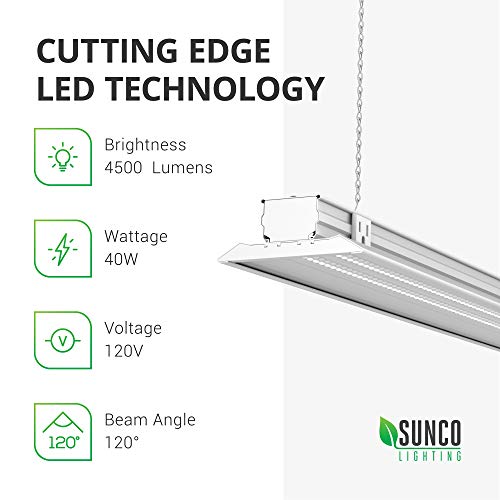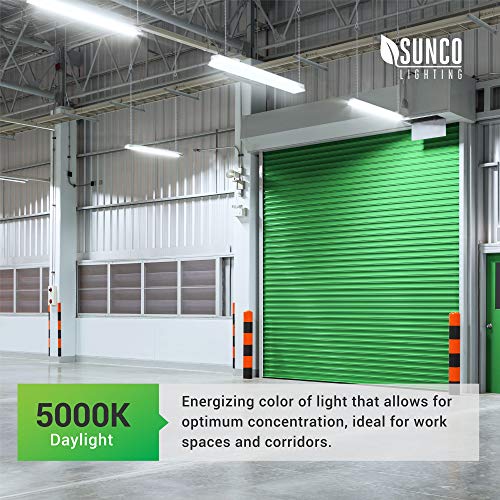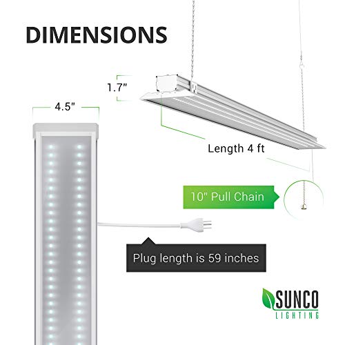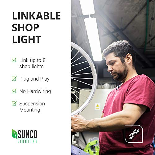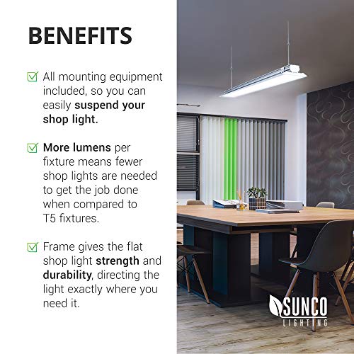 Sunco Lighting 10 Pack Flat LED Shop Light, 4 FT, Linkable Double Integrated LED, 40W=300W, 5000K Daylight, 4100 LM, Clear Lens, Plug in, Suspension Mount, Pull Chain, Garage - ETL, Energy Star